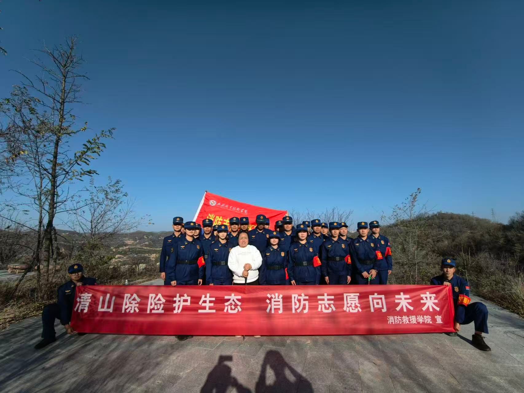 10月31日下午,延安职业技术学院消防救援学院组织 30名消防救援志愿者服务队学生,开展“消防蓝护青山绿,志愿红净山野路”志愿行动。此次活动旨在清除学院门口特立公园的白色垃圾,消除火灾隐患,守护生态环境,以青春力量为山林安全“加码”。