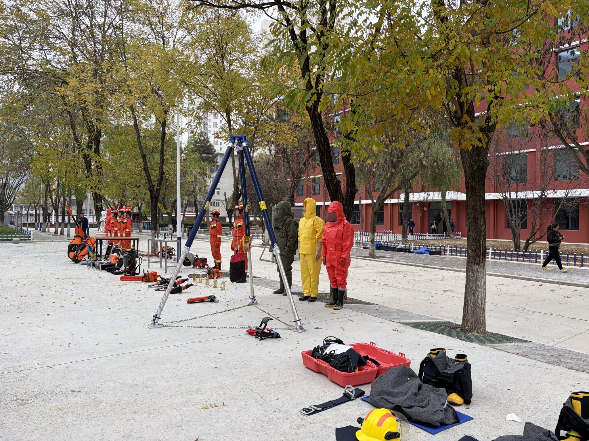 “报告指挥组!宿舍 3 楼东侧‘火情’突破初期控制,浓烟封锁通道,请求专业救援力量支援!” 校园安保组的紧急汇报声刚落,消防救援学院的实训队员便身着橙色消防服、肩扛水带冲进现场。“一组架设移动水炮,二组携带破拆工具开辟救援通道,三组做好空气呼吸器更换准备!”带队的消防救援学院教官声如洪钟,指令清晰有力。实训队员们动作娴熟如行云流水:两名队员半跪在地,快速对接水带接口,“咔嗒”一声扣合到位;破拆组手持液压扩张器,对准变形的模拟房门缝隙发力,“哐当”一声便打开救援通道;灭火组架起移动水炮,高压水流如银龙般喷涌而出,精准压制 “火点”。短短5分钟,“火情”被彻底扑灭,实训队员们摘下头盔时,额角的汗珠顺着脸颊滑落,在阳光下折射出晶莹的光,现场师生自发响起阵阵掌声。