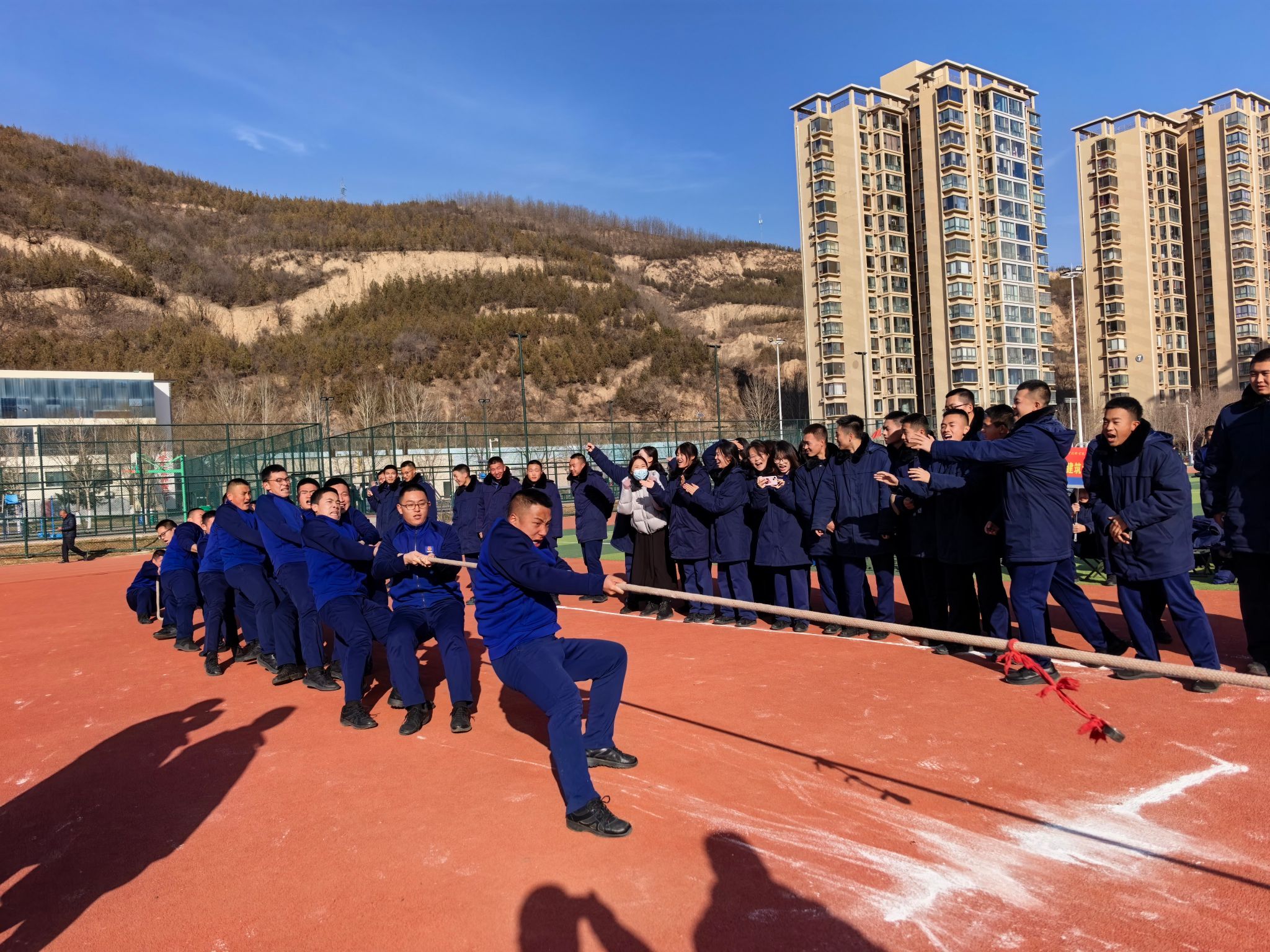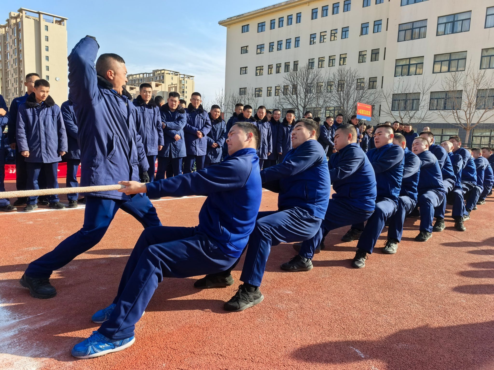 12月8日下午14:30,延安职业技术学院消防救援学院首届拔河比赛在第二运动场正式拉开帷幕。本次比赛以“绳系团队魂、力拼消防人、赛场竞风流、同心赢未来”为主题,共有8个班级代表队参与,消防救援学院全体管理干部、辅导员及学生到场观看,共同见证这场充满力量与协作的竞技盛宴。